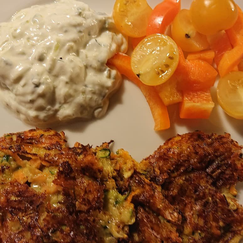 Idag ser jag efter mitt barnbarn som är dunderförkyld. Hon ville ha mormors köttfärsröra med lök, zucchini och körsbärstomater och det ordnade jag såklart. Igår var hon lite piggare och då gjorde jag morots- och zucchini plättar med gurkyoghurt, medans hon o bästisen fixade chokladbräck med nötter o korinter och amerikanska julkakor.